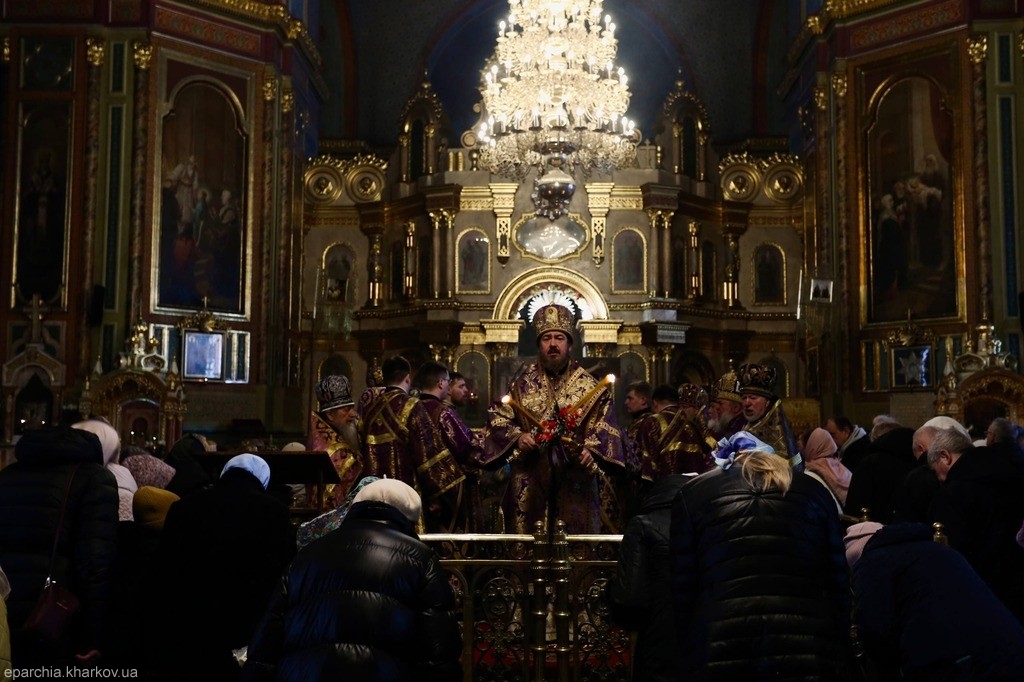 9 квітня 2026 року, у Великий Четвер Страсної седмиці, Спомин Тайної Вечері, Високопреосвященніший Онуфрій, митрополит Харківський і Богодухівський звершив Божественну літургію святителя Василія Великого, архієпископа Кесарії Каппадокійської у Свято-Благовіщенському кафедральному соборі міста Харкова.