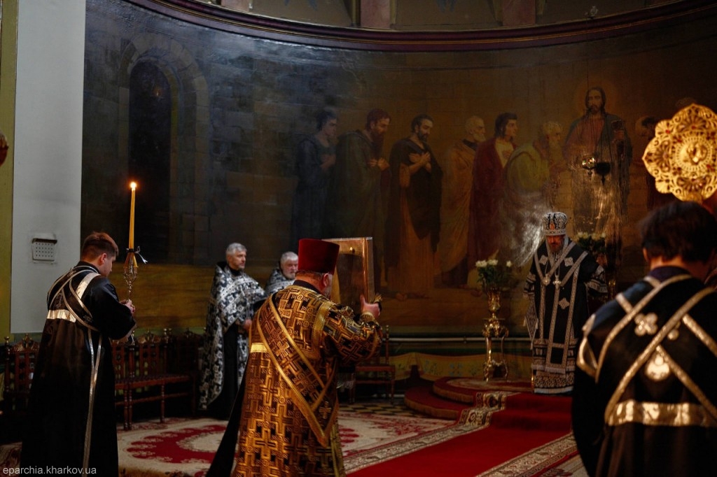 10 квітня 2026 року, у Велику П’ятницю Страсної седмиці, коли звершується спомин Святих спасительних Страстей Господа нашого Іісуса Христа, Високопреосвященніший Онуфрій, митрополит Харківський і Богодухівський, очолив вечірню з виносом Святої Плащаниці та утреню з чином погребіння Господа і Спасителя нашого Іісуса Христа у Свято-Благовіщенському кафедральному соборі міста Харкова.