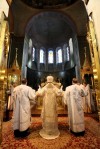 Після закінчення Літургії владика звершив чин великого освячення води, після чого всіх присутніх окропив святою водою.